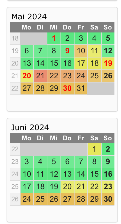 (Ich versuche immer meinen Urlaub in die grüne Zone der Feriendichte zu legen - dieses Jahr perfekt geklappt 👍 in Thüringen gehts am 20.6. schon los da bin ich aber keinem in die Quere bei uns gekommen)