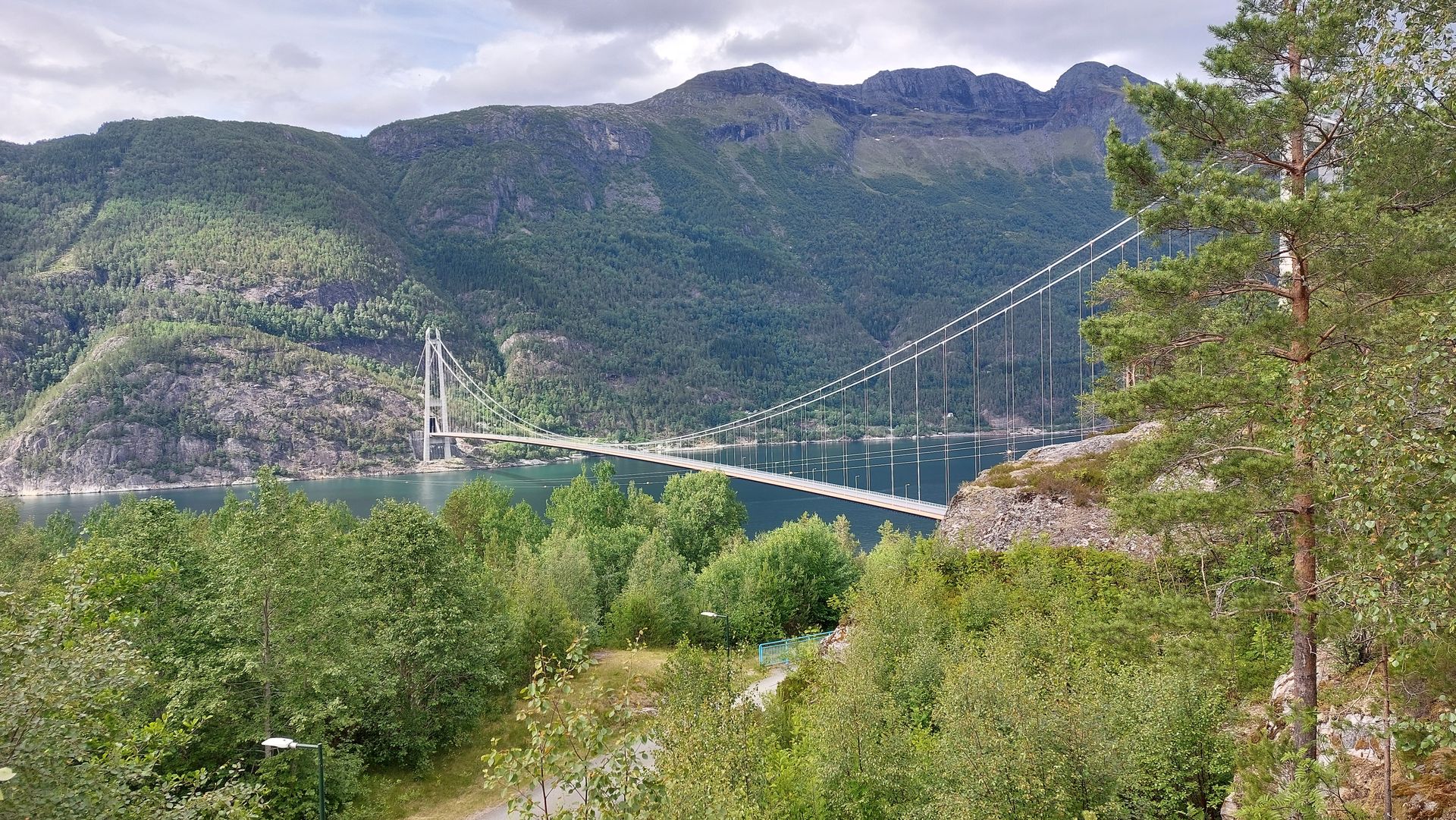 Zuletzt hielten wir noch an einen Aussichtspunkt von dem man auf die Hardangerbrücke schauen konnte
