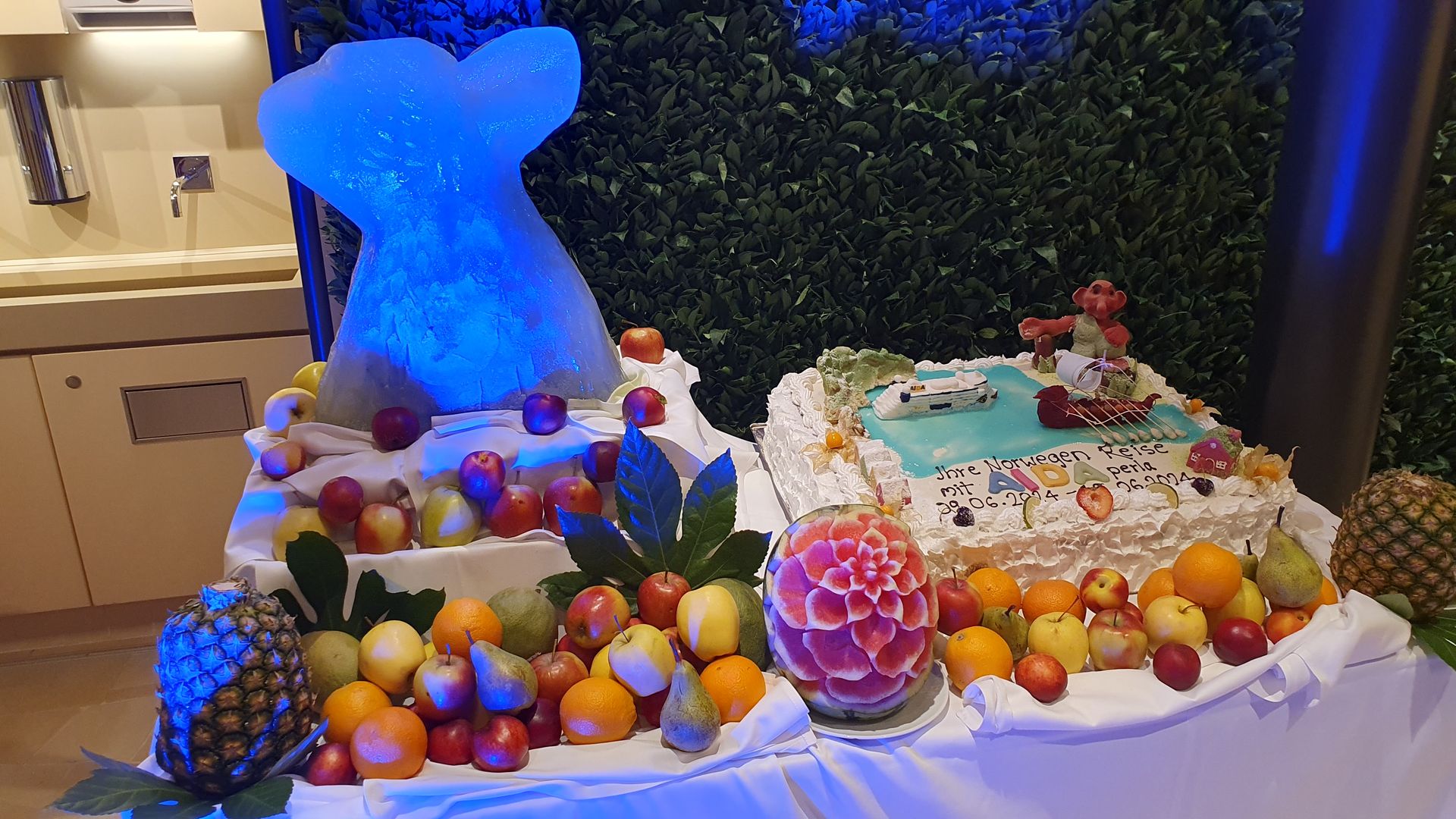 Gestern war auf jeden Fall noch ein wunderbarer letzter Abend. Nach der Begegnung mit der Luna haben wir uns die noch relativ neue Show "Heart of the Ocean" angeschaut. Einfach nur Klasse. Laut Entertainmentmanager Olli sollen wohl in nächster Zeit alle Schiffe eine neue Show bekommen. Sind dann mal gespannt