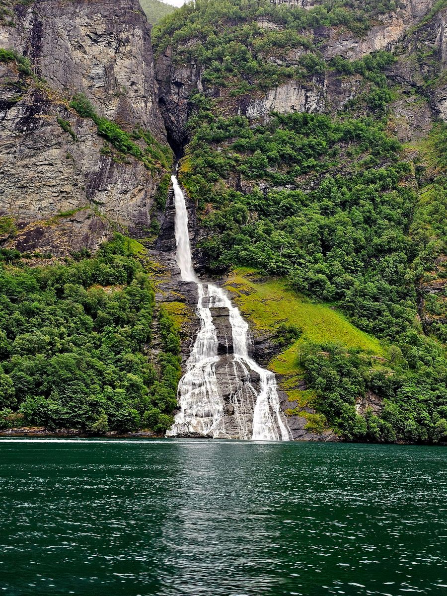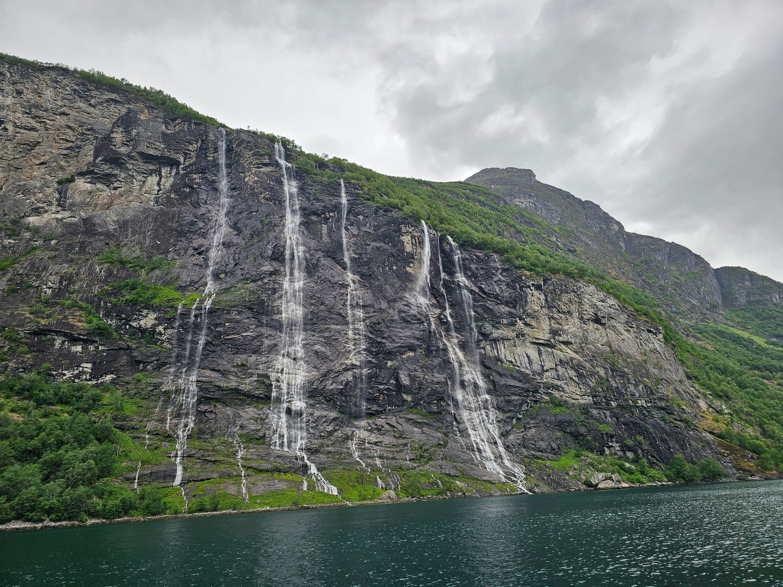 Ich hatte heute den Ausflug Hel13 "Geiranger auf eigene Faust" gebucht. Orga war leider eine total Katastrophe. Eigentlich sollte unser Boot um 11:45 Uhr starten, ging aber erst um 12:20 Uhr los. Abfahrt sollte dann um 15:45 sein, wurde dann aber erst halb 5. Wir standen also fast eine Stunde draußen im Regen. Aber wie heisst es so schön: Gibt ja kein schlechtes Wetter, nur ... ![]()