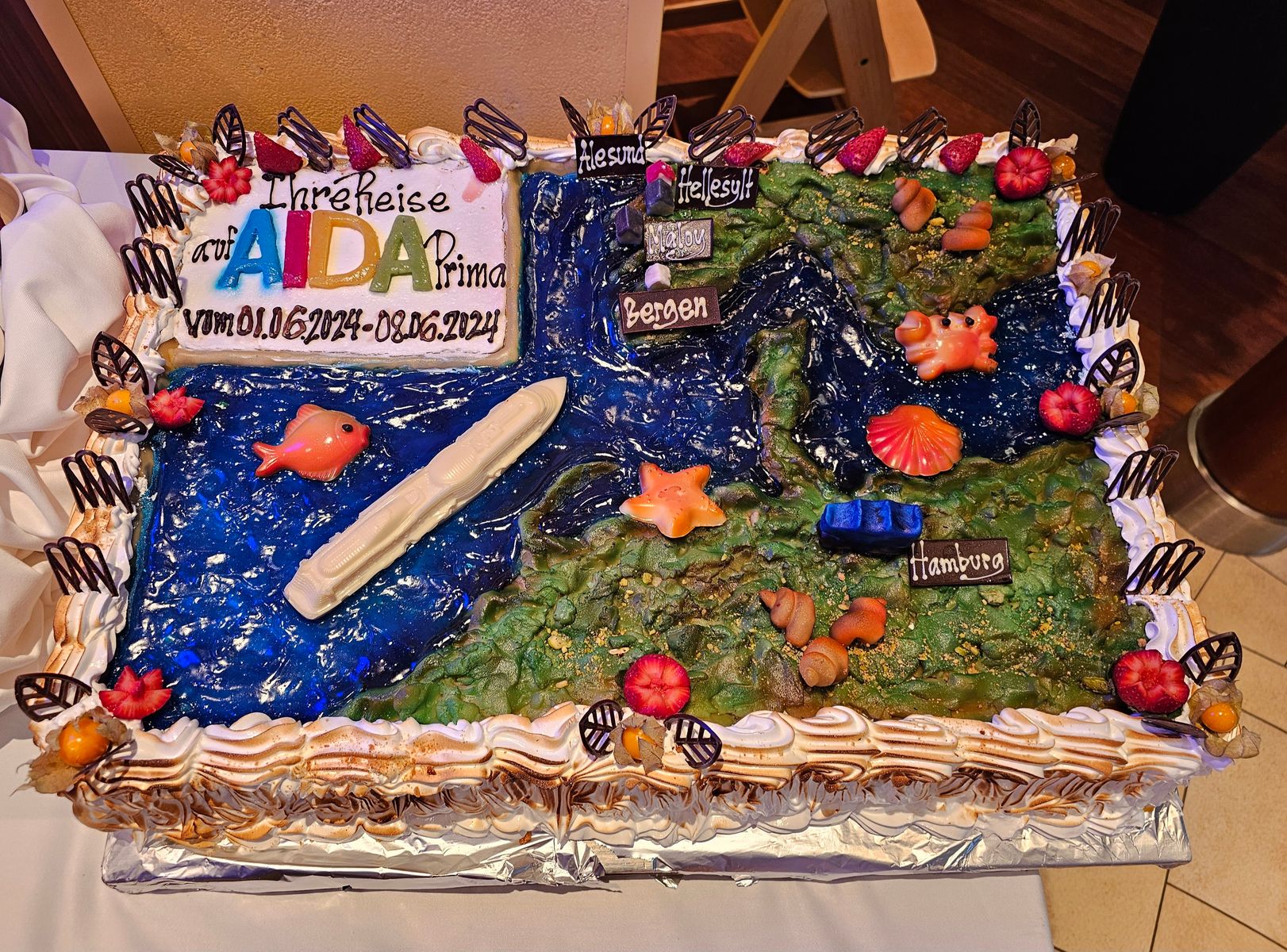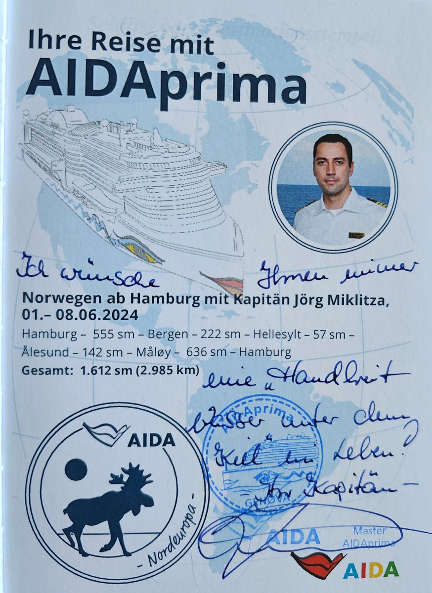 und wir werden gleich Auslaufen. Wir waren heute auf dem Ausflug: Das Beste von Maløy. Zum Glück erst ab 11 Uhr, denn vorher hatte es wieder ordentlich geregnet. Ich muss sagen: Die Landschaft ist wirklich wunderschön. Ich hätte gerne noch öfters gehalten um Fotos zu machen. Leider waren wir nur bei 3 Stopps: Dem Leuchtturm, am Strand und bei den Kannesteinen. Der Ausflug ging von 11:00 bis 14:20 Uhr. Unser Guide war ein Deutscher, der nach Norwegen ausgewandert ist. Es war sehr informativ. Allerdings macht mich die Busfahrt immer müde. Ich werde mich jetzt gleich in der Lounge aufwärmen und das letzte Auslaufen genießen