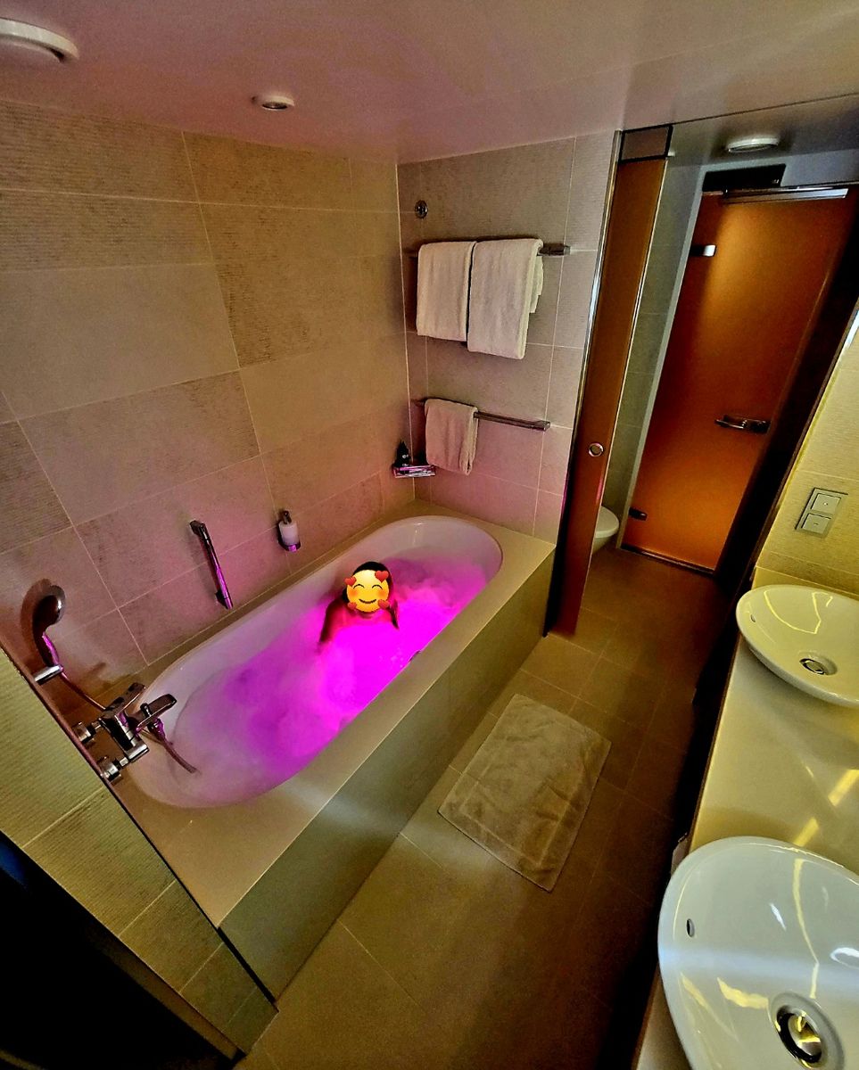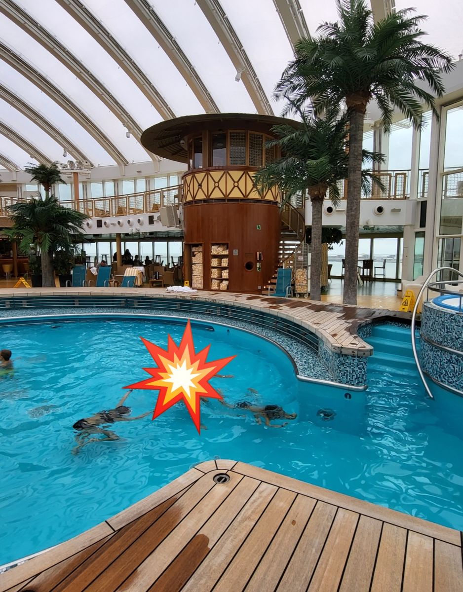 Zurück an Bord, etwas durchnässt, aufgewärmt mit nen Tee in der Lounge, geht's jetzt für die Kids erstmal in die Wanne...