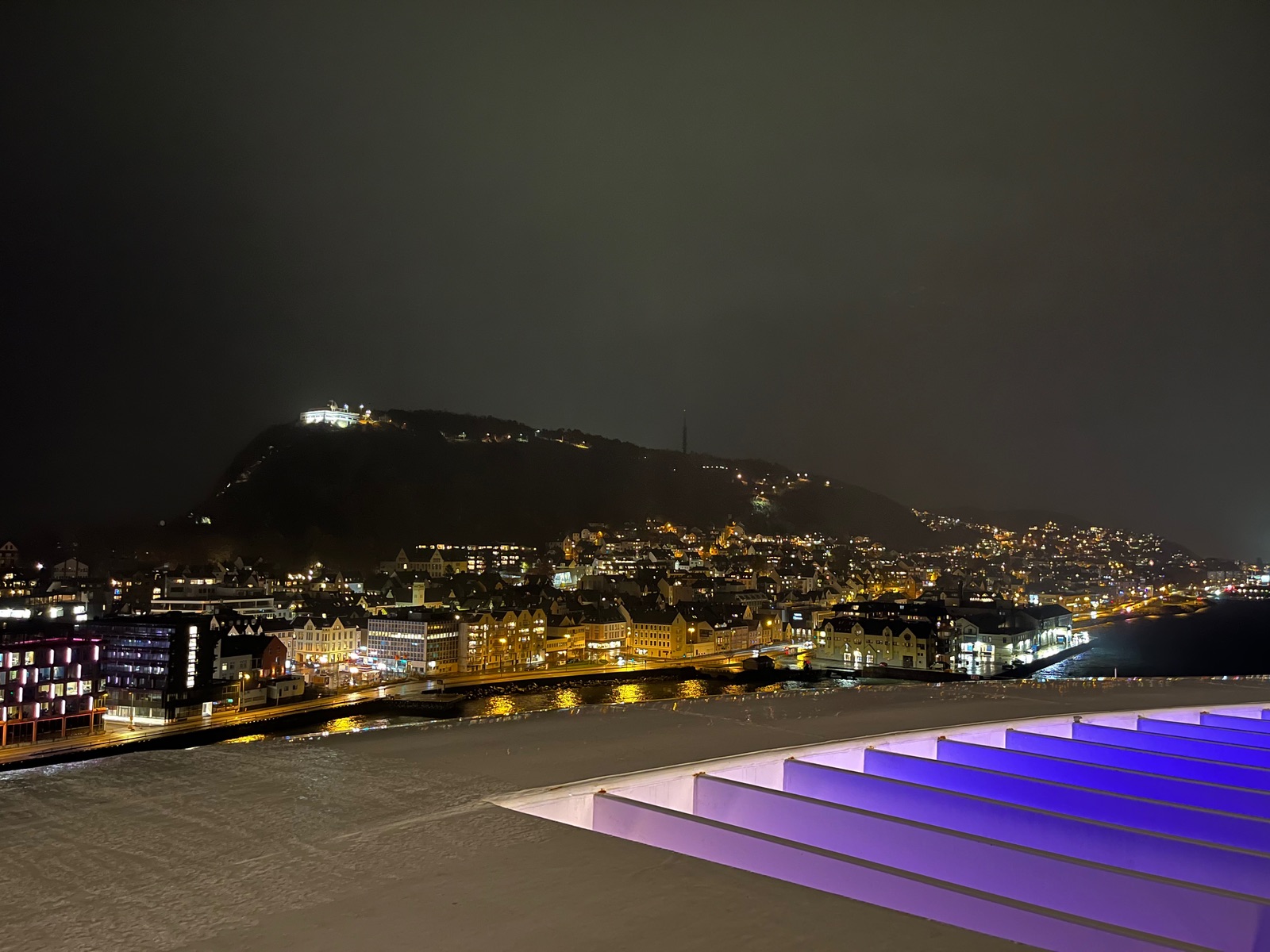 Einen schönen Guten Abend aus Alesund. Ein stürmischer und regnerischer Tag liegt hinter uns. Dafür verweilen wir den Abend hier noch.