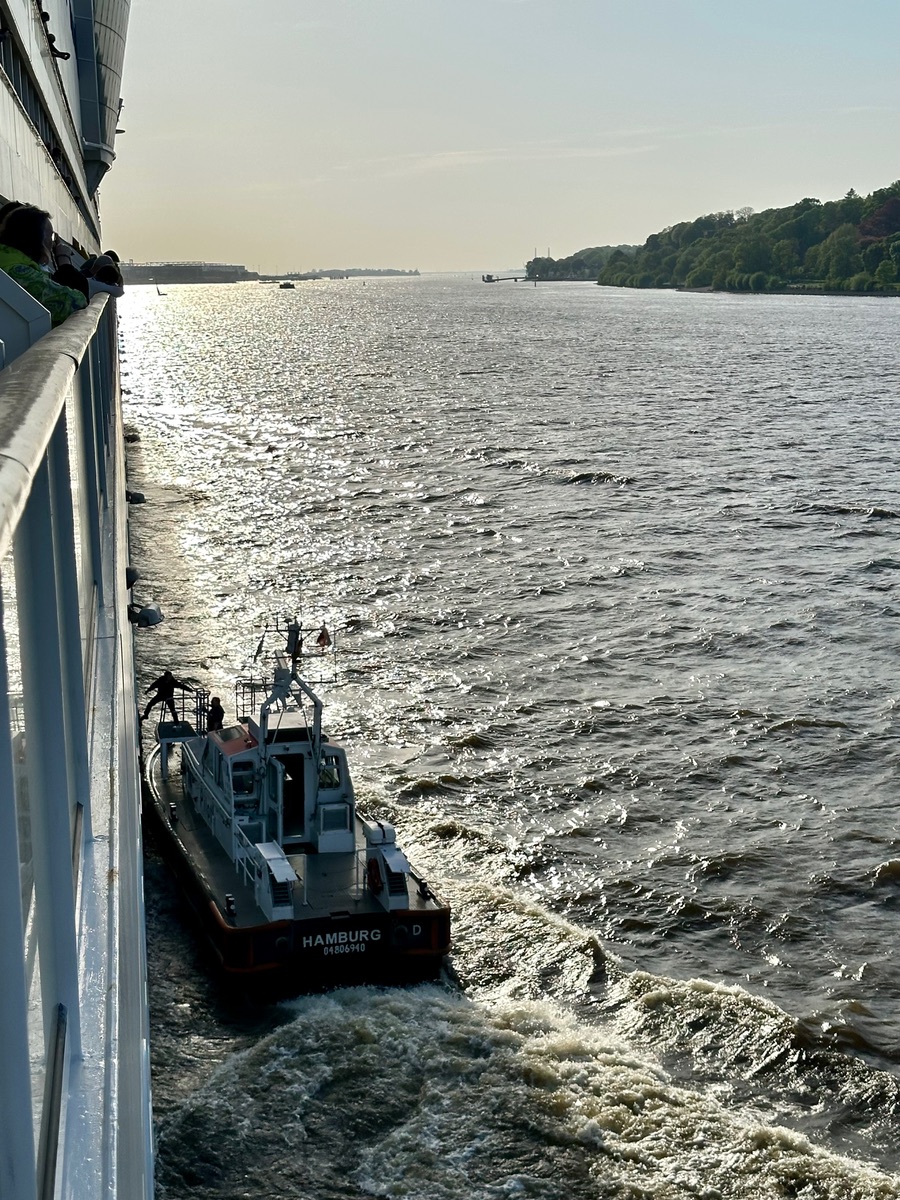 Auf dem letzten Foto hüpft gerade der erste Lotse wieder von Bord.