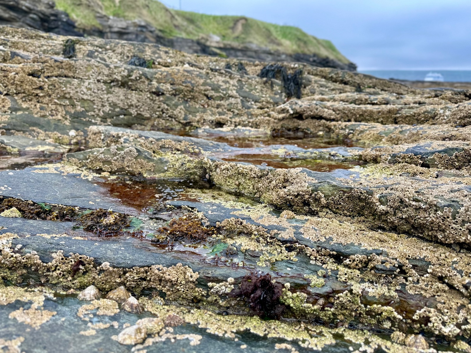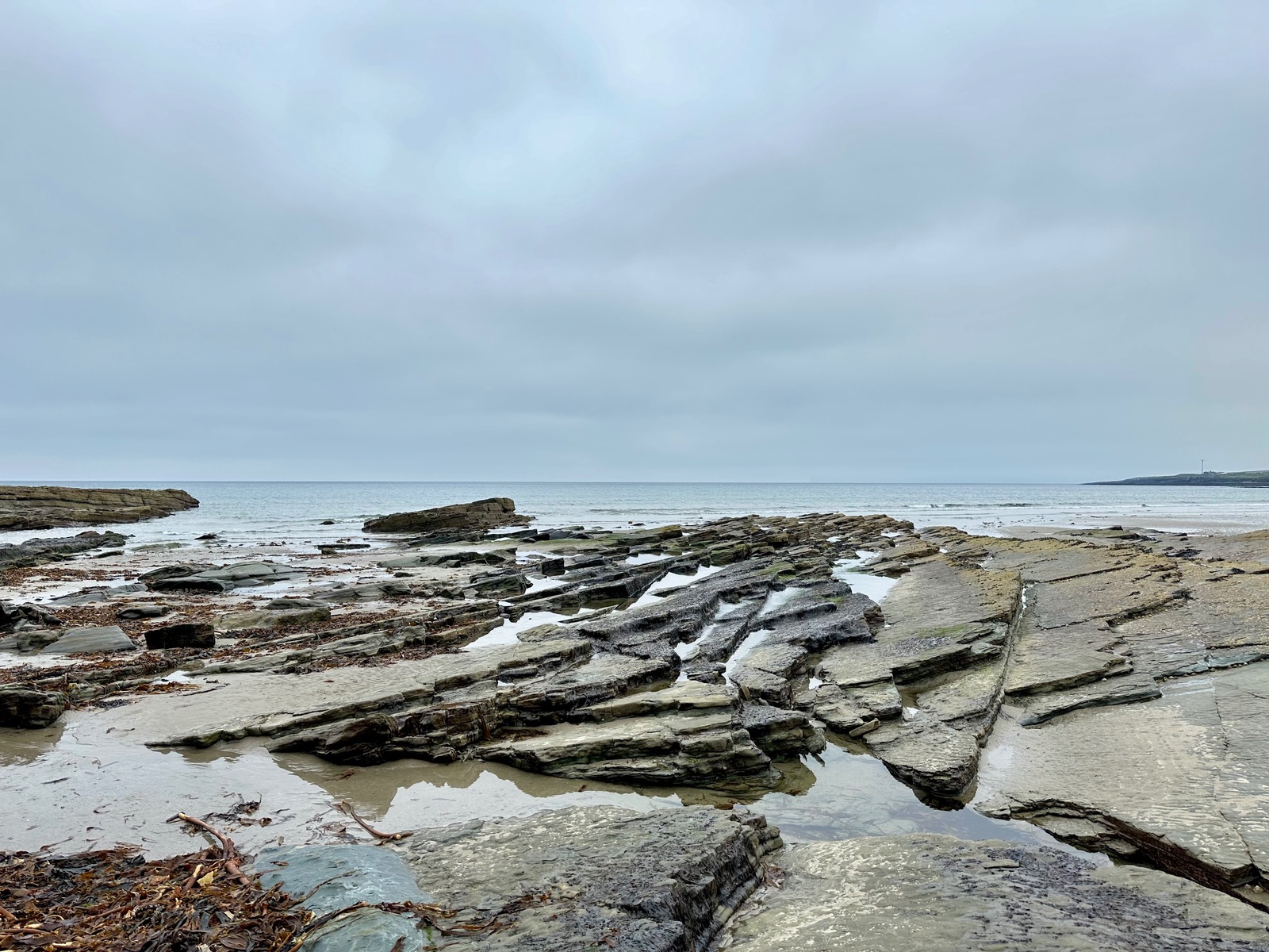 Auf dem Rückweg waren wir noch am Strand, es gab viele Steine, Schieferplatten und kleine Muscheln.