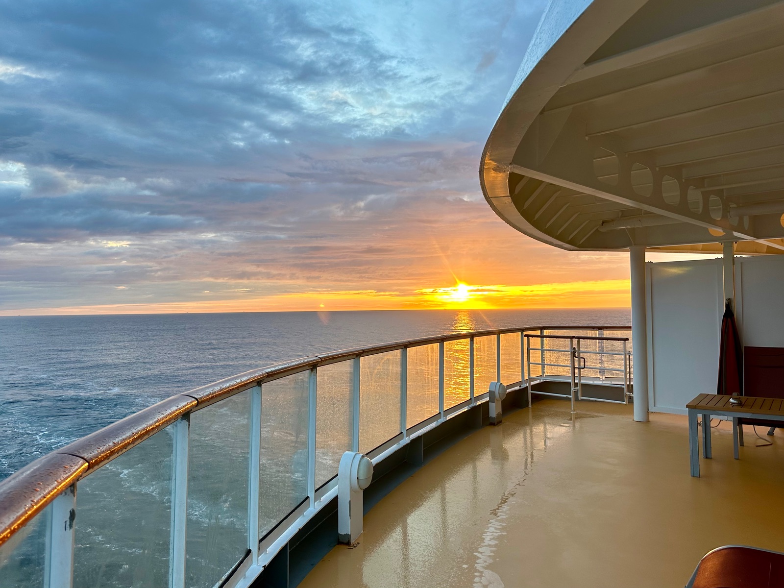 Gestern Abend noch lecker gegessen im Steakhouse, die doch wieder recht emotionale Abschiedsveranstaltung im Theatrium geschaut, noch einen letzten Cocktail getrunken und die schönen Himmelsfarben nach dem Sonnenuntergang betrachtet.