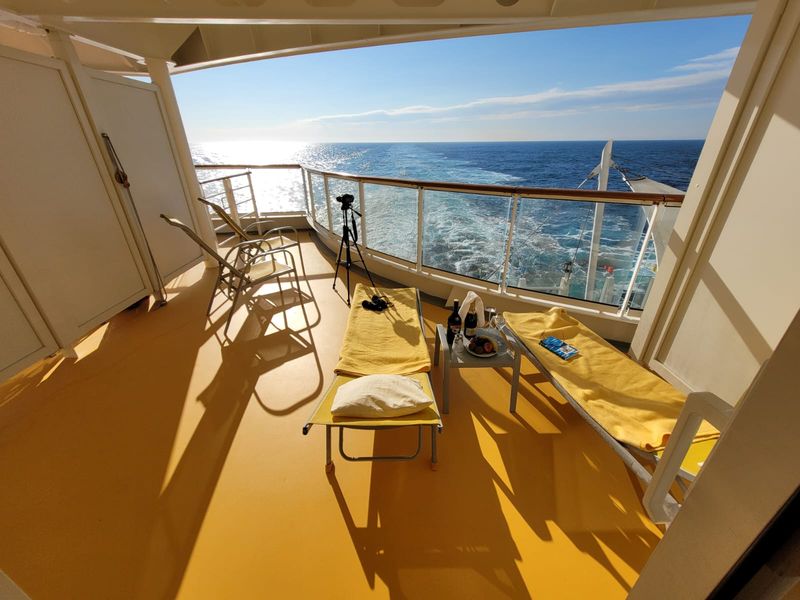 Der Balkon ist sensationell, aber beim An-und Ablegen rappelt es ganz schön. Und den Seegang merkt man auch deutlich. Hatten gerade diese Kabine auf der Stella, aber im Premium gebucht.