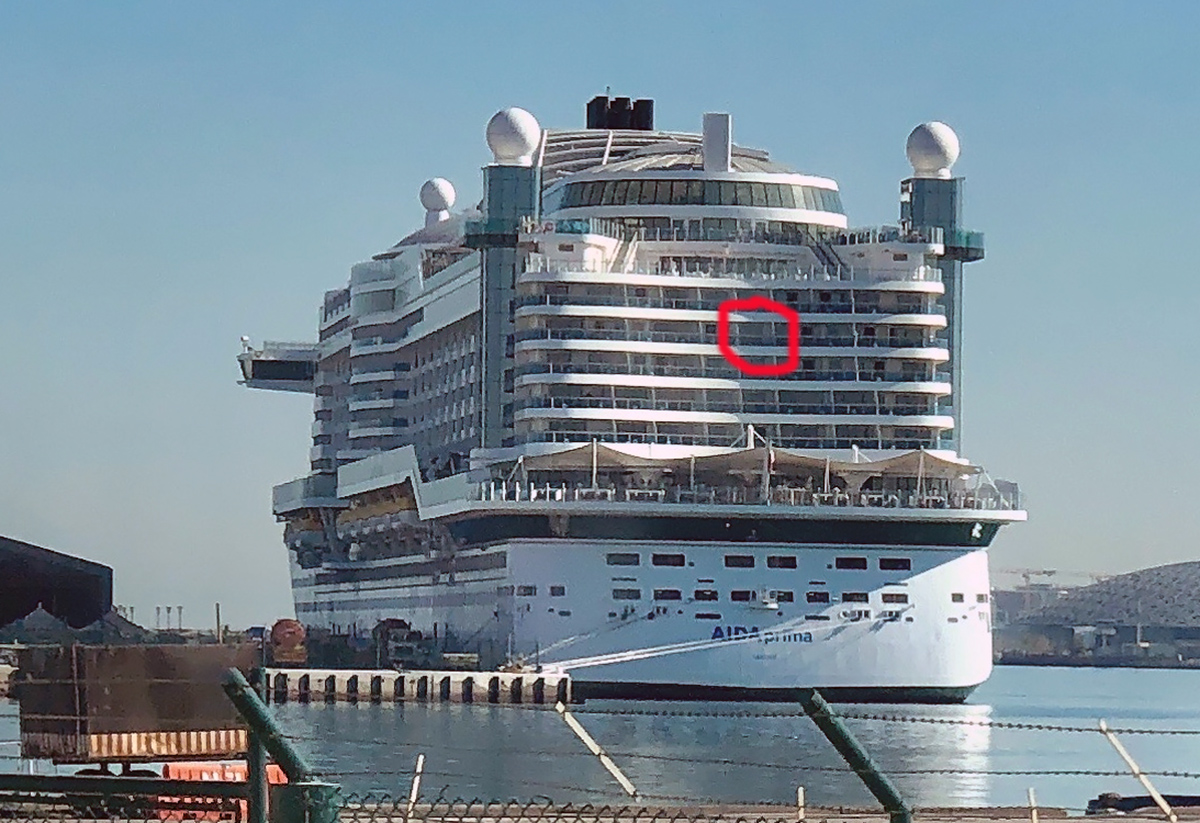 Weit vorne Deck 5 auf der Aura, hoffentlich sehen wir da überhaupt das Meer.:titanic:
