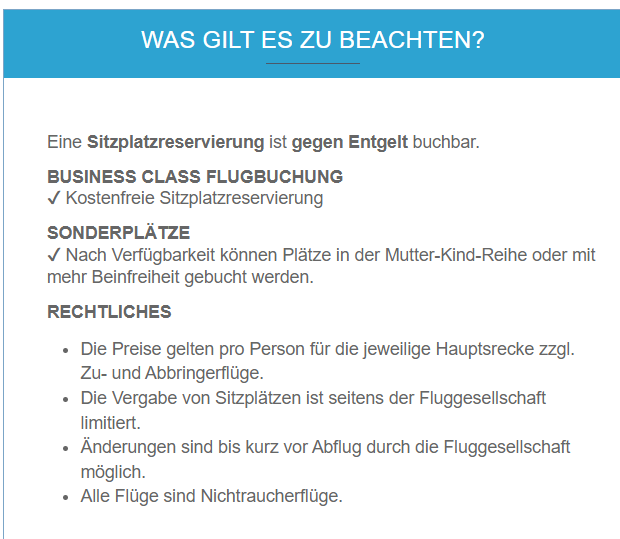 Bei Condor 29,90 in premium Eco für Standardsituationen, der Xl-Seat 99,90
