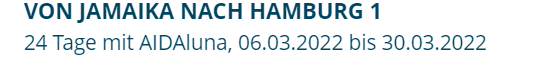 Mir ist gerade aufgefallen, dass die Tour mit der Luna ab/bis Jamaika nicht aktiv beworben wird. Da tauchen nur die Reisen der Perla, Diva und Luna ab/bis Dom. Rep. auf. Könnte auch ein Zeichen sein für Unsicherheiten bzgl. An-/Abreise Jamaika. Bzw. Jamaika als Ziel generell.