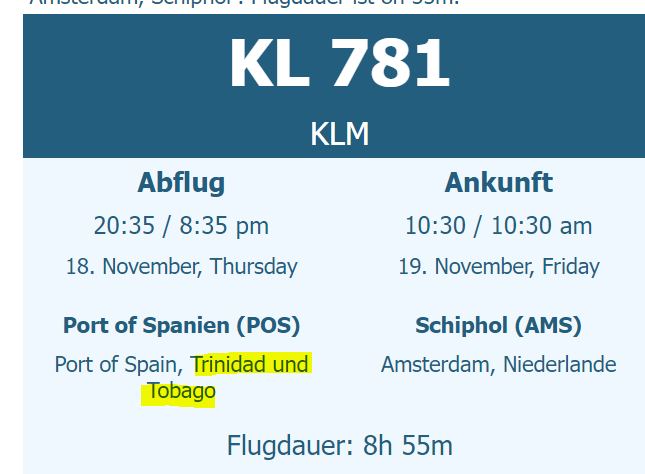 Wobei der Flug kein Nonstop Flug ist sondern in Port of Spain zwischenlandet - davon steht wohl nix bei AIDA