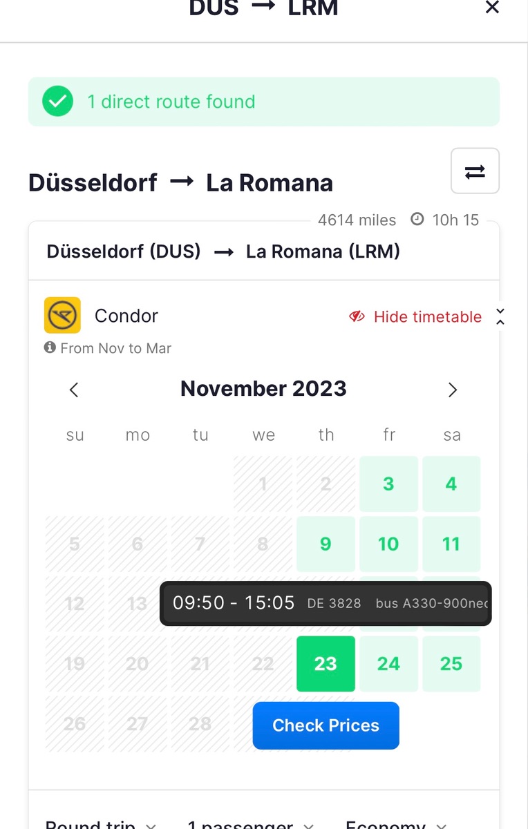 hat schon jemand Infos zu Airline und Flugzeiten am 25.11. Düsseldorf nach La Romana.