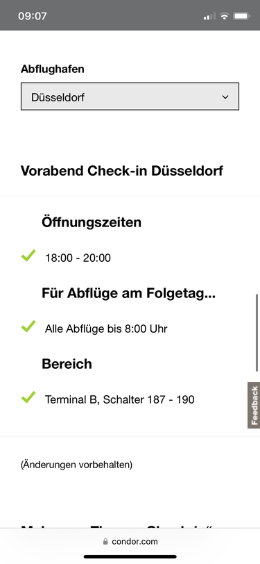 Bei Frankfurt - Condor steht Abflüge bis 14.30 Uhr wusste gar nicht, dass das auch was extra kostet