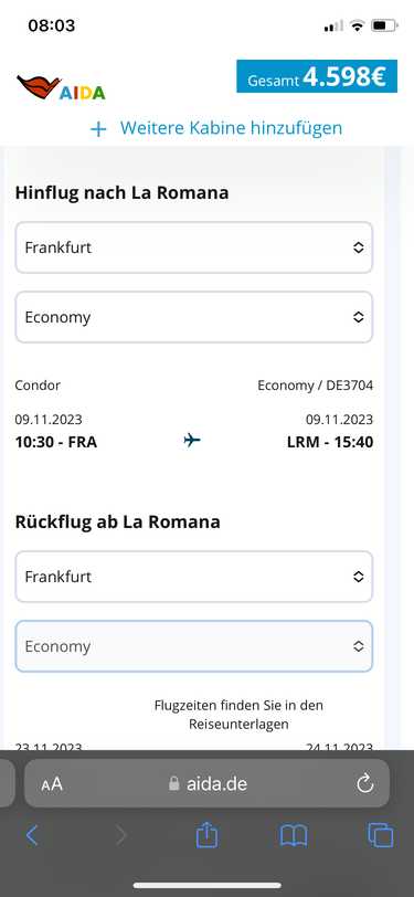 Für unsere Reise 02.12-16.12 Frankfurt - La Romana sind nun die Flugzeiten eingestellt (Discover Hin 11.15, Rück 18.25). Sitzplatzreservierung PE geht aber noch nicht.