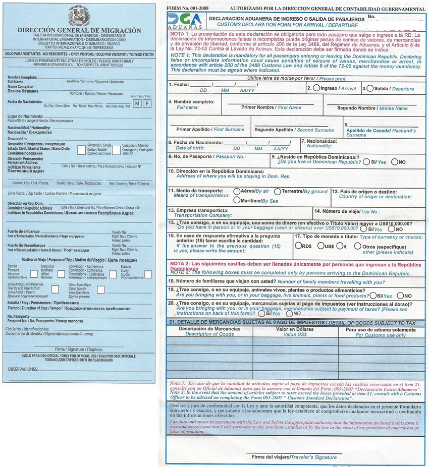 Die Finanzbehörde der Dominikanischen Republik hat laut Medienberichten vor kurzem an allen Flughäfen und Häfen des Landes Automaten aufgestellt, aus denen Einreisende eine Touristenkarte herauslassen können. Ihr Preis liegt wahlweise bei 10 Euro oder 10 Dollar. Der Betrag kann am Automaten bar bezahlt werden. Ebenfalls ist es möglich, die Karte über das Internet zu bestellen und mit einer American Express oder einer Visa- oder Mastercard-Kreditkarte zu bezahlen. Die Webseite für den Bezug der Karte gibt es in drei Sprachen: Spanisch, Englisch und Französisch. Es ist auch weiterhin möglich, die Karte vor Reiseantritt vom Reiseveranstalter oder vom Konsulat zu beziehen.