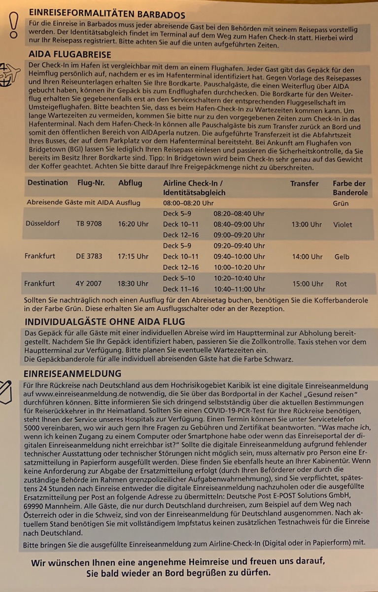 Wir machen die TA von Kiel nach Montego Bay und leider steht immer noch kein Rückflug ach DUS in My Aida.