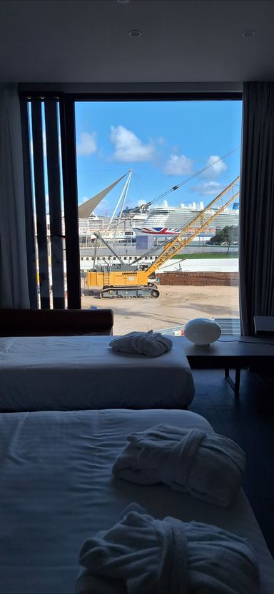 dann am nächsten Tag zu Fuß zum Schiff. Wir hatten Early Check in (TUI) und waren somit schon kurz nach 9 an Bord.