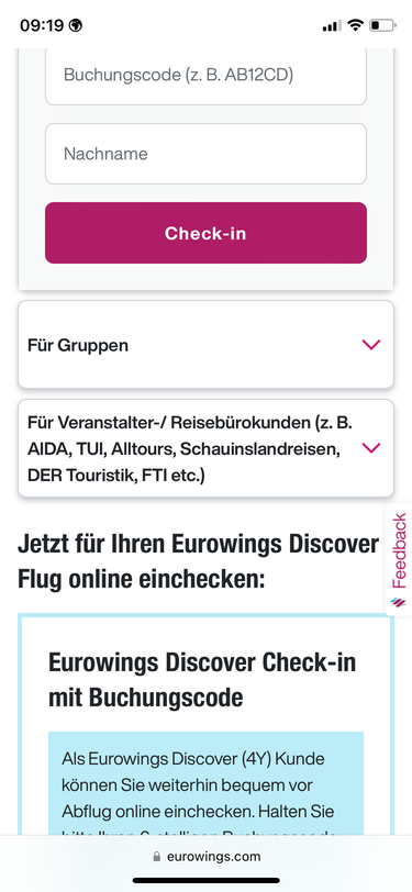 Auf dem Foto siehst du, was du auf der Eurowings Homepage aufrufen musst, wenn du vorher online Check in angeklickt hast.