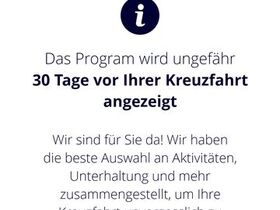 In der App kann man jetzt im voraus seine ganze Reise sehen, nicht nur die eigenen Zusatzbuchungen, sondern das ganze Tagesprigramm der Reise. Also Kurse, etc. Das ist mir neu, habe das bisher nicht beobachtet. ![]()
