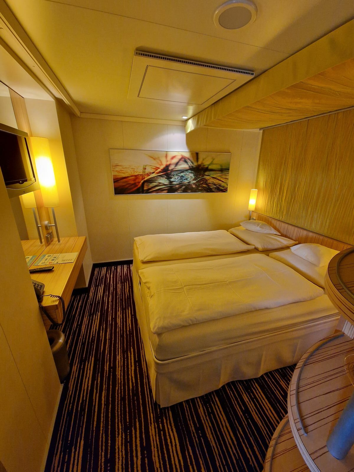 Die Kabine ist nur wenige Schritte von den Aufzügen, der Rezeption und dem Zugang zum Außendeck entfernt - zentraler geht es kaum.