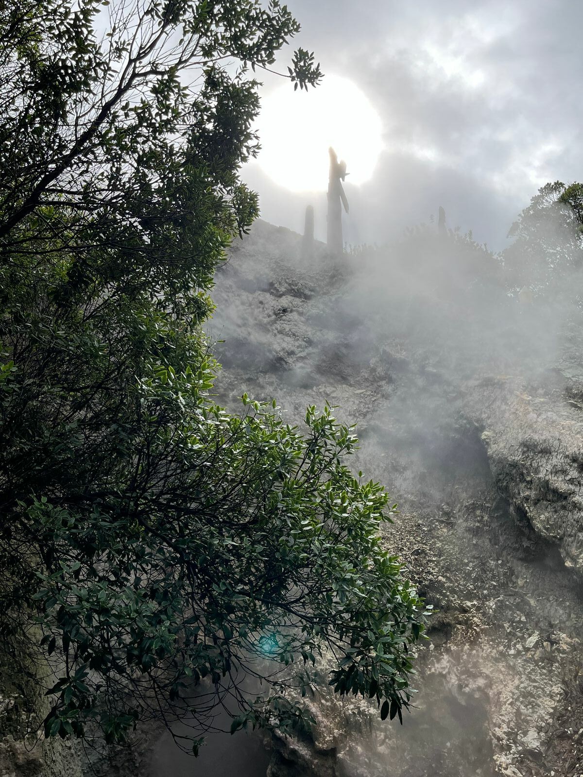 Gestartet sind wir mit einer kurzen Rundtour durch Ponta Delgada. Das Wetter war miserabel, sodass wir nicht zu den 2 Seen fuhren, sondern eine andere Route. Auf unserer Wunschliste stand: Teeplantage, den Feuertopf essen und viel Landschaft. Landschaftlich hat São Miguel sehr viel zu bieten. Die wilde Küste mit traumhaften Stränden fanden wir in Ribeira Grande, wo International Surfwettbewerbe stattfinden. Wir stoppten ,auf dem Weg zur Teeplantage, an vielen Aussichtspunkten, die leider bei Regen nur erahnen lassen, wie schön es dort ist. Unsere allererste Teeplantage hat uns super gefallen. Robert erklärte alle Arbeitsschritte im Detail. Im Verkostungsraum haben wir dann probiert. Weiter ging’s zu den Furnas (Schwefelquellen) in den Bergen. Sehr beeindruckend zischte und blubberte es an allen Ecken. Die Strecke dahin ist ein landschaftliches Jurassicpark Erlebnis.