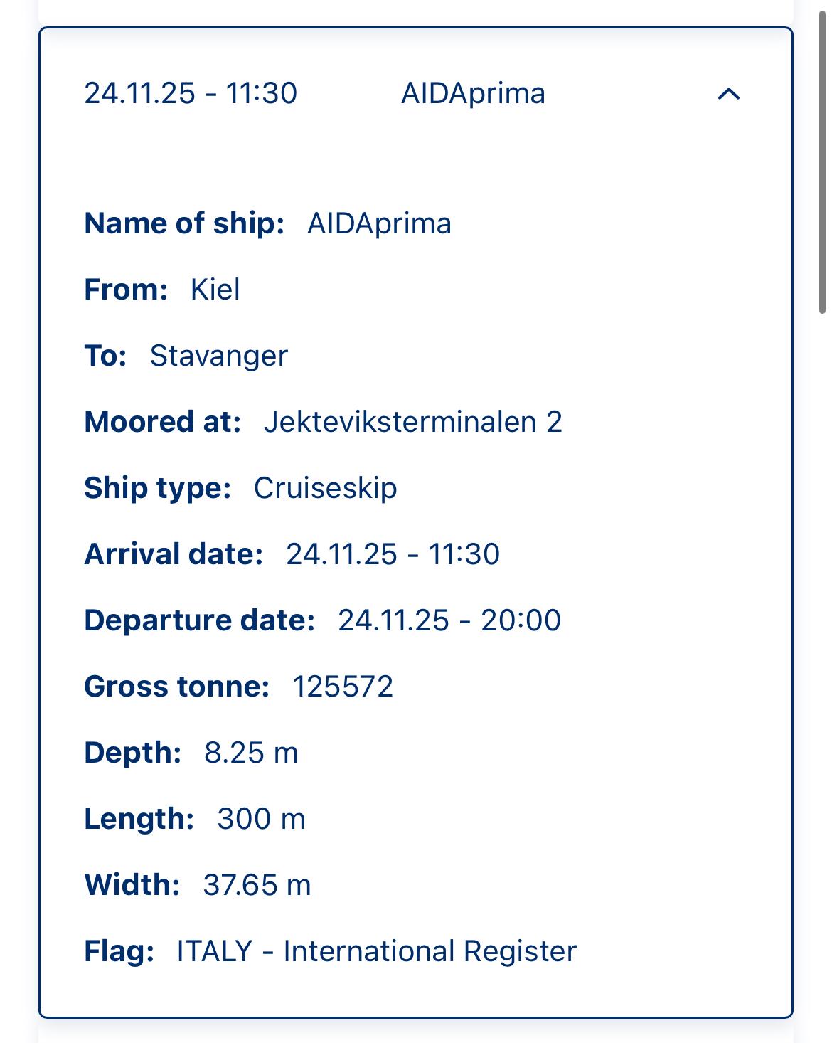 Die Prima ist am 24.11. in Bergen gemeldet.