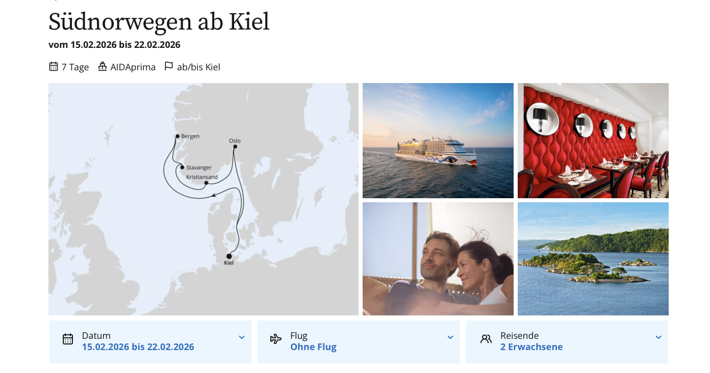 die Seite hier zeigt viele AIDA-Routen mit Verfügbarkeiten in Echtzeit.