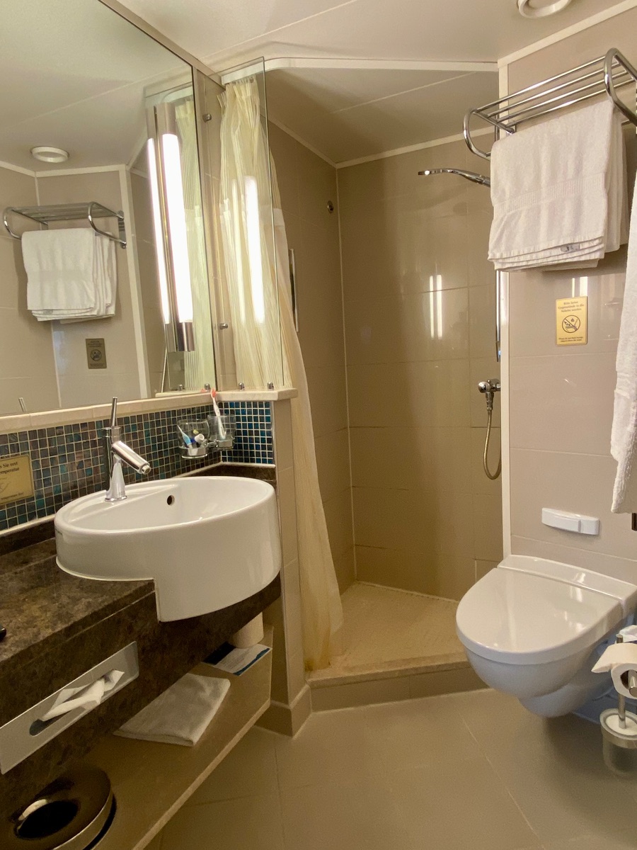 Während unserer Adventsreise, haben wir diese schöne Kabine auf MS Amera bewohnt und waren mehr als zufrieden. Kaum eine Einschränkung der Sicht, Kabine liegt auf dem Promenadendeck. Kurze Wege nach draußen um mal schnell ein Foto zu machen oder einfach frische Luft zu tanken. Außerdem sehr kurze Wege zu Harrys Bar und den Restaurants, Amera, Ozean und Pichlers. Die Kabine schön hell und geräumig, und im Bad eine Dusche. Dazu ein begehbarer Kleiderschrank. Wir können die Kabine uneingeschränkt weiterempfehlen und würden diese auch wieder buchen. Das letzte Foto zeigt die „Sichtbehinderung“