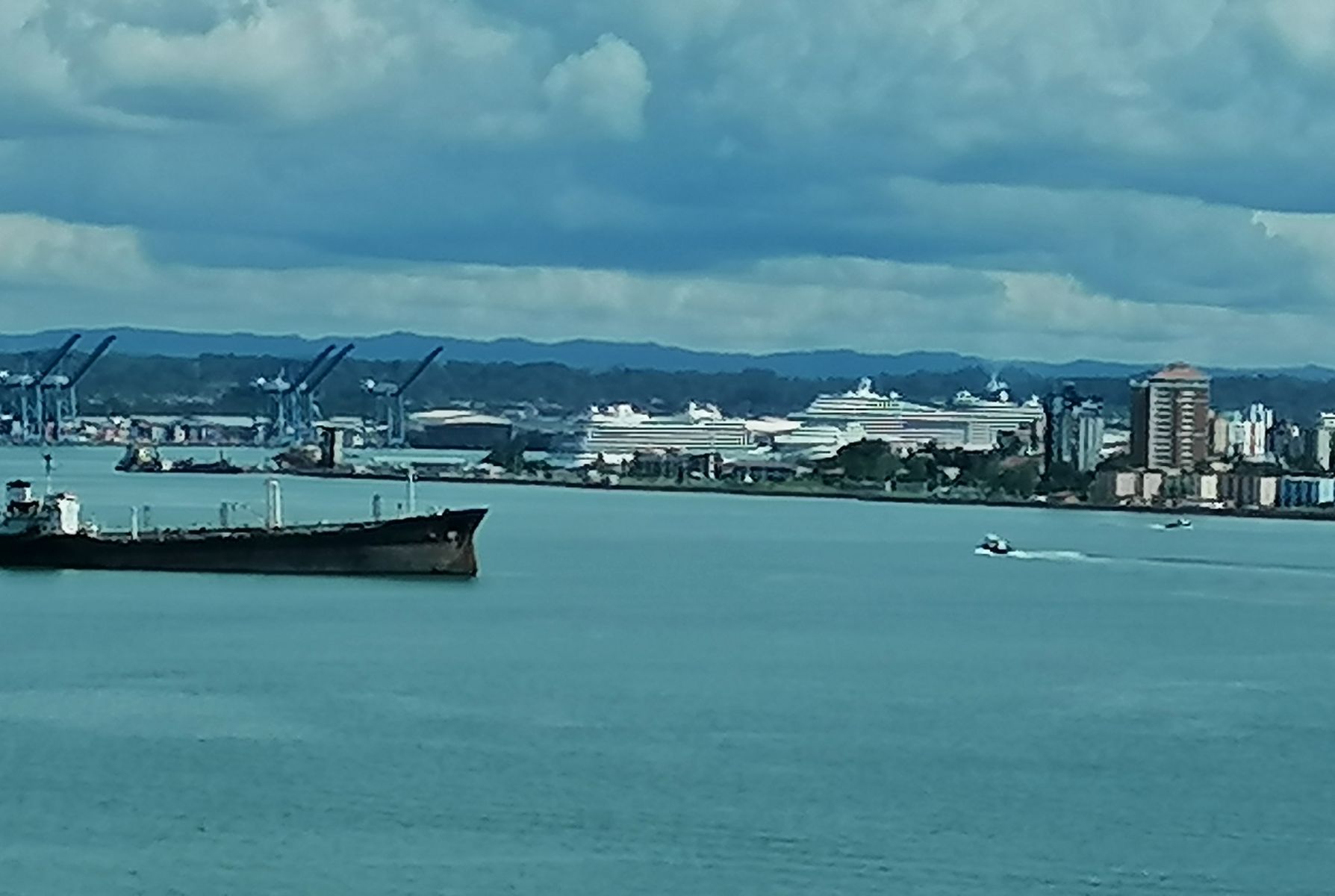 Unser kommendes Schiff liegt natürlich schon im Hafen und die abreisenden Gäste verschwinden langsam in Busse, Taxis oder Ubers...
