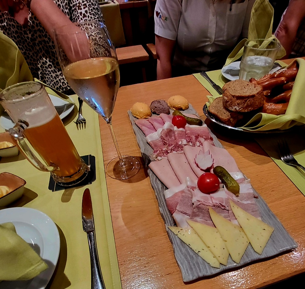 Ich bin schlecht im Schätzen… ich denke so ca 50 Personen waren wir im Brauhaus.es gab Sekt, Bier und Orangensaft.