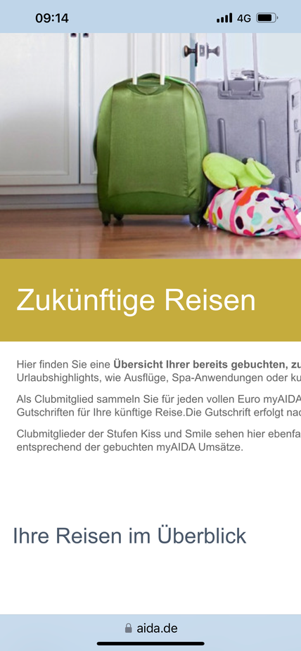 Und 3 Tage vor Abreise in my aida zu sehen, und im Reiseplaner der gesendet wird.
