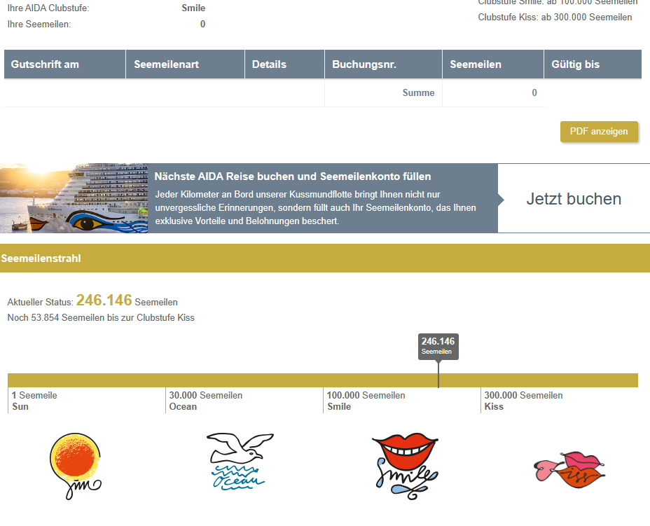 Wir haben im Sommer für das Parken in MyAida gebucht, Seemeilen bekommen.