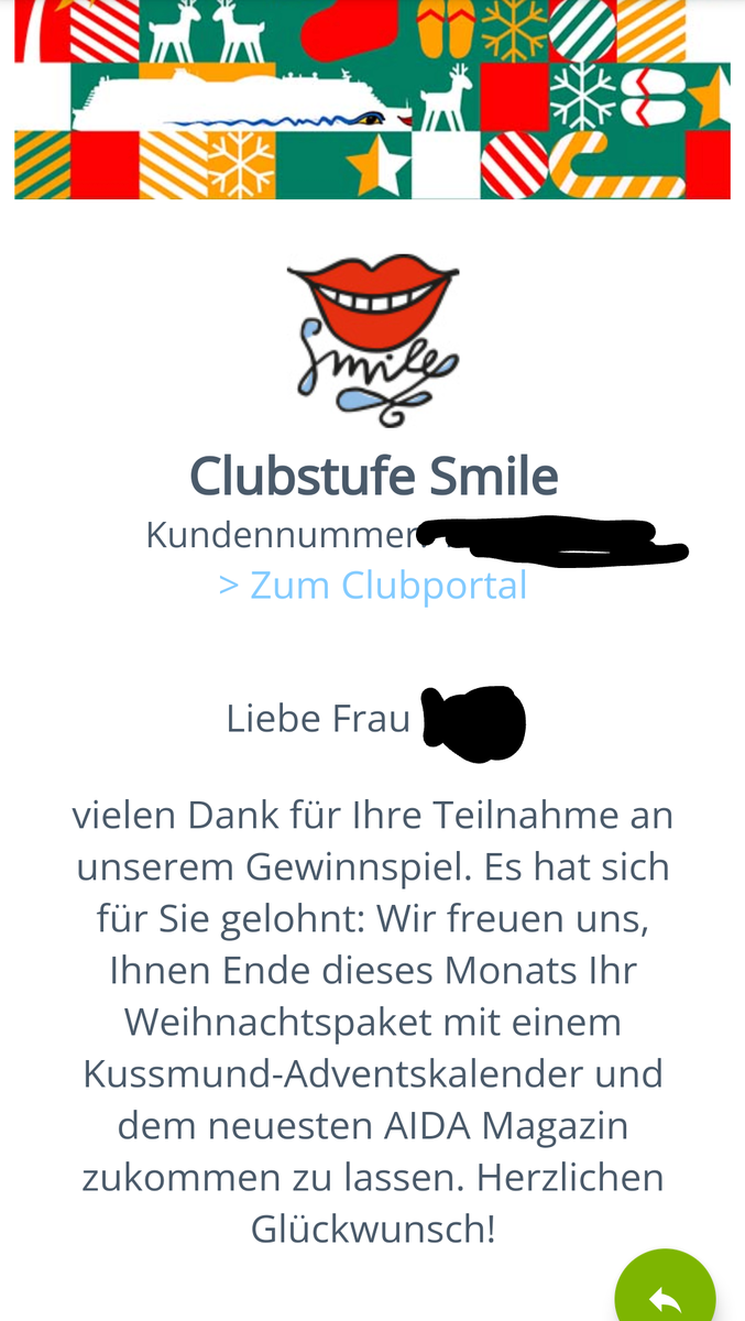 Ich habe gerade eine Mail von Aida bekommen