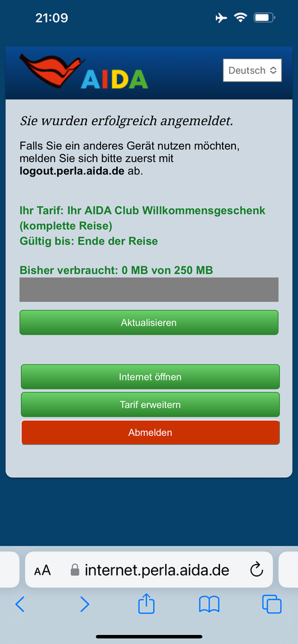 Bei uns fehlte vor der Transreise mit der Bella ebenfalls das Gönn dir Guthaben für über My Aida gebuchte Leistungen.
