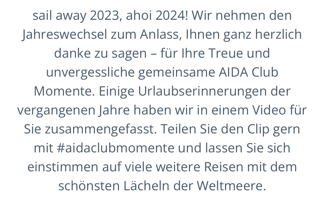 Hab auch nur den allgemeinen Werbefilm von Aida bekommen . 🤷♂️
