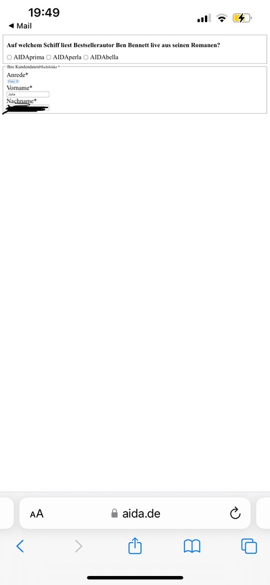 Ich komme in den AIDA Club rein, aber nicht ins Gewinnspiel