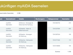 Es steht dort: "Ihre zukünftigen myAIDA Seemeilen".