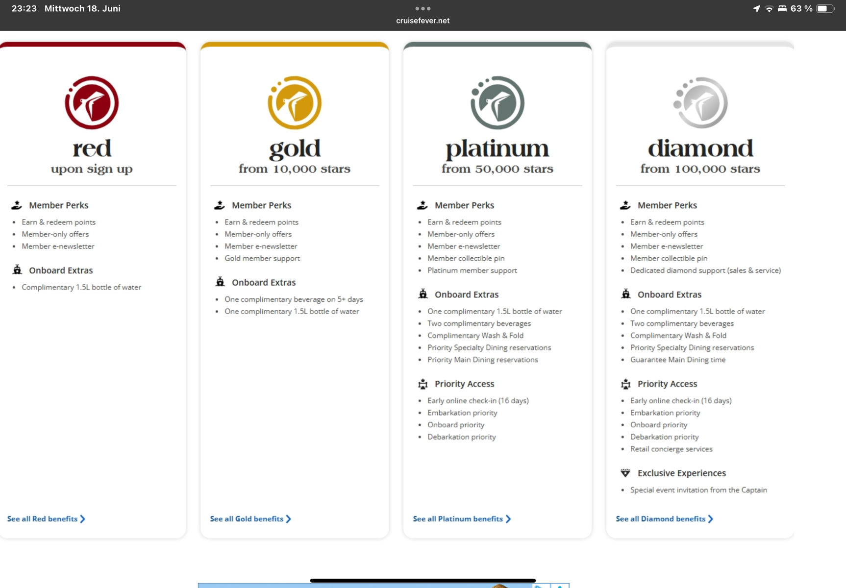Bisher wurden nur die Nächte bewertet, ab 2026 ähnlich wie bei Aida gibt es Sterne für jeden Dollar Umsatz.