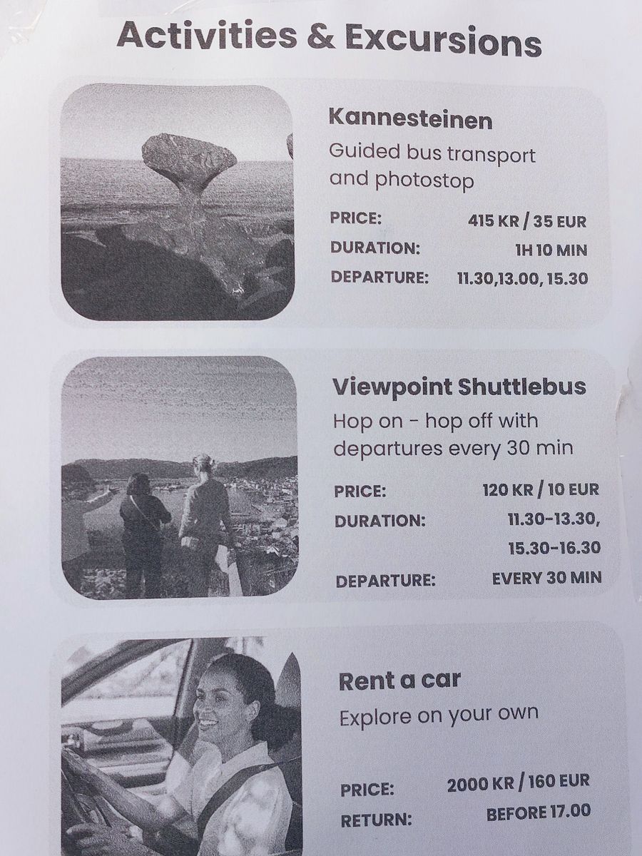 Also wir waren mit der Sol Ende Mai in Maloy. Wir haben direkt am Anleger spontan eine Bootstour gebucht („Lighthouse Safari“) Ging gut 2 Stunden um die Insel, mit einem sehr netten deutschen Guide. Es gab ordentlich Seegang und man hat viel von der atemberaubenden Küste gesehen. An Bord wurde zum Kosten Elchsalami angeboten. Uns hat die Tour gut gefallen, war aber nicht ganz günstig, ca. 75,- Euro pro Person.