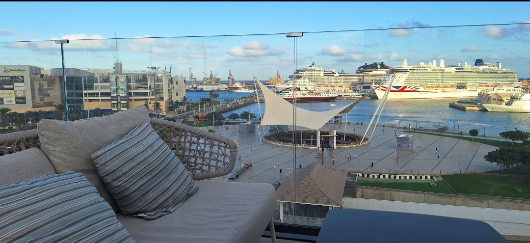 Die Aussicht von der Skybar ist aber sehr schön, also Schiffe gucken meine ich