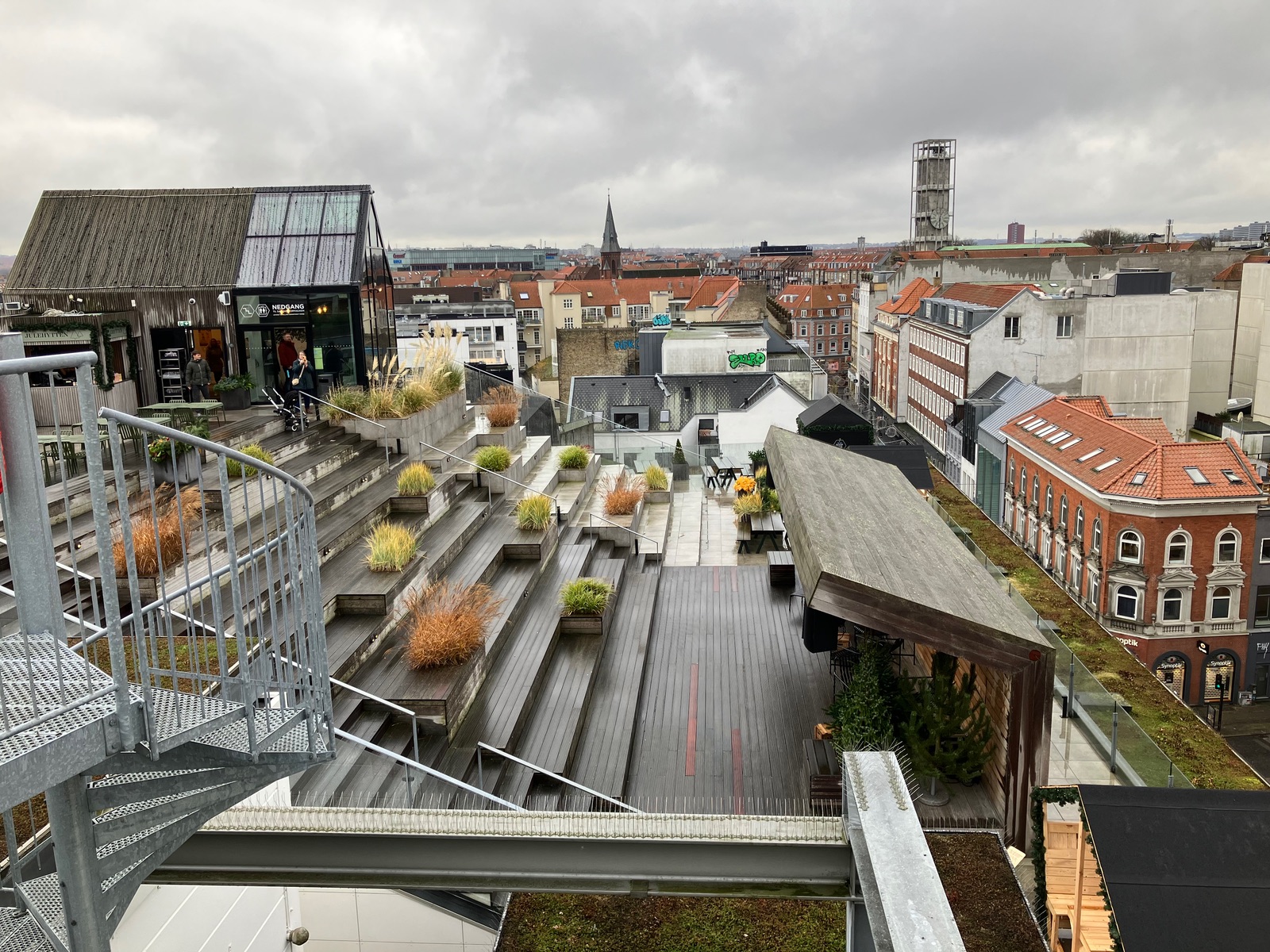Als erstes war ich endlich auf dem Roof Garden vom Kaufhaus Salling. Das hat sich wirklich gelohnt, sehr sehr sehr schön. Nur leider war alles nass (auch wenn es während meiner Zeit in der Stadt nicht geregnet hat), sonst hätte ich mich gerne da auf die Holzstufen gesetzt und noch ein bisschen länger geschaut.
