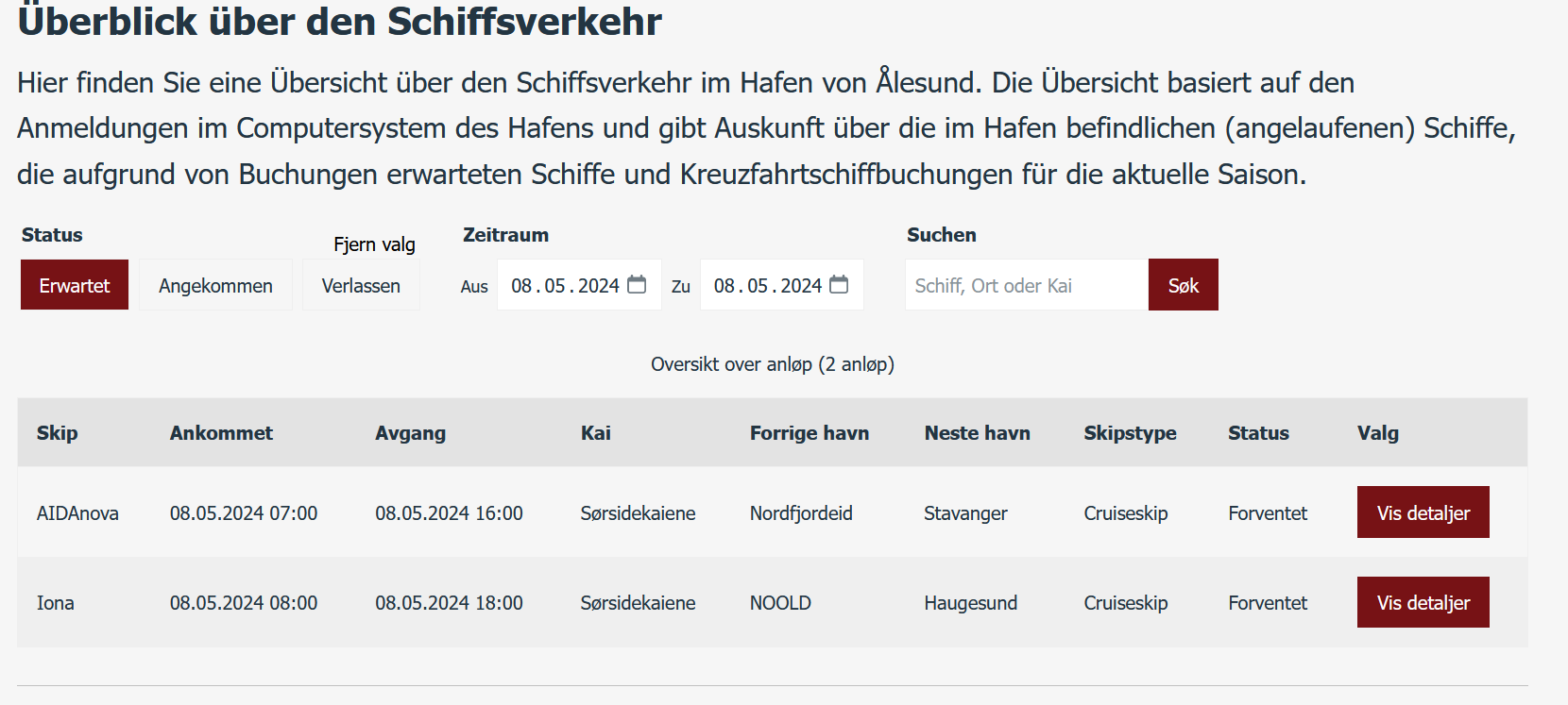 Die liegen in dem kleinen Alesund mit einem andern großen Schiff gemeinsam in Alesund. Und wir auch :(
