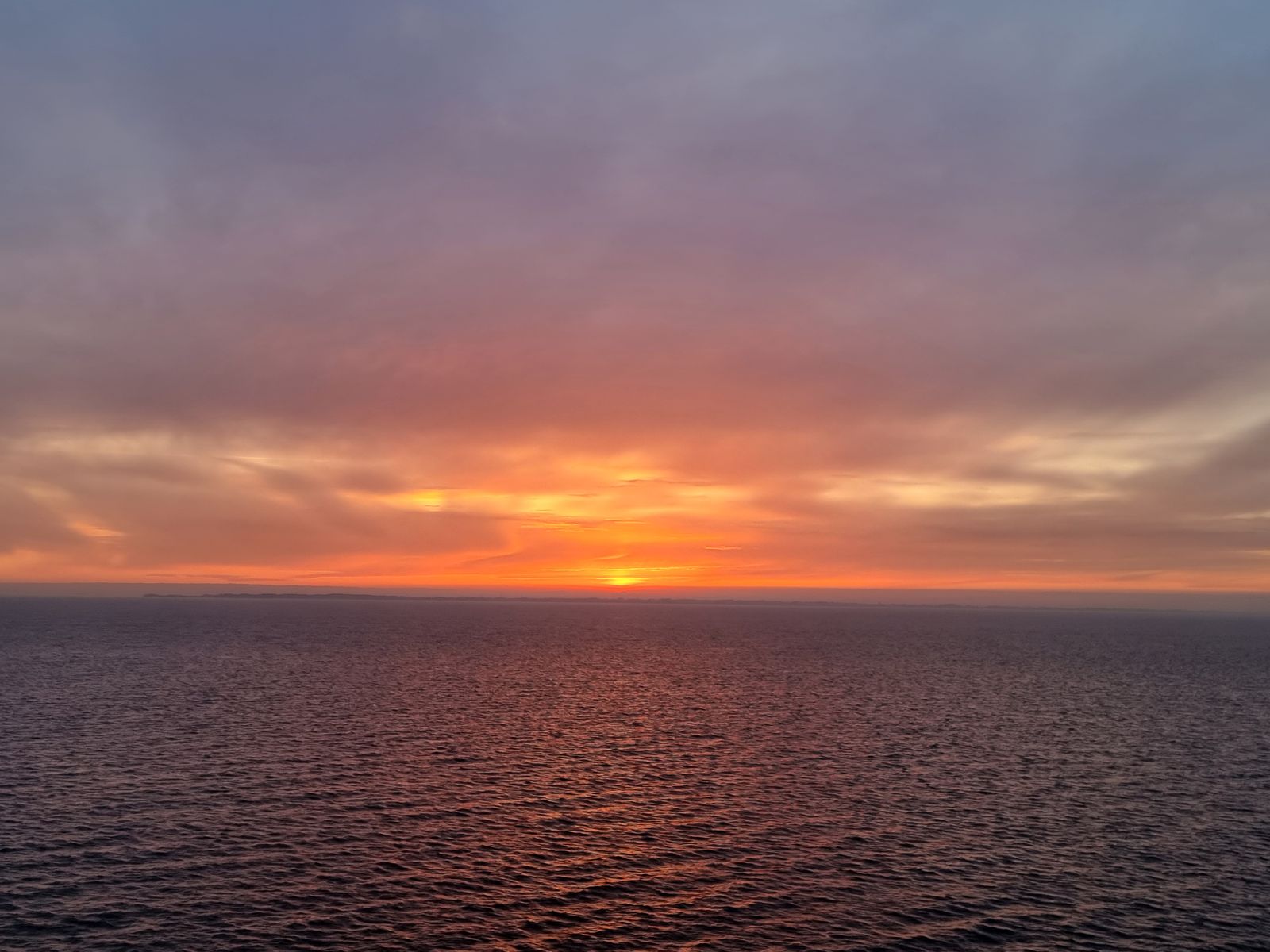Heute morgen war ich wieder halb 6 an Deck, bin rum gelaufen und hatte dabei schon knapp über 3 km drauf :thumbsup: Wie gut dass das Schiff so groß ist, spart man sich das Lauftraining und hat noch gute Aussichten dabei :thumbsup: :lachzwink: