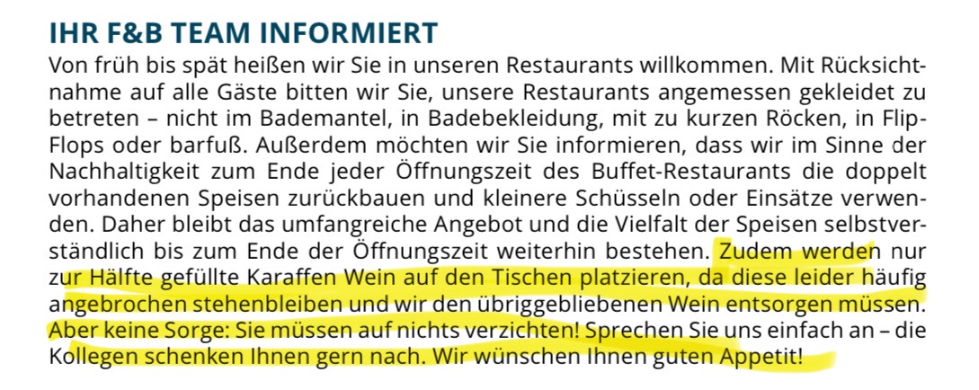 Die halben Karaffen wurden aber in der AIDAheute angekündigt und begründet…