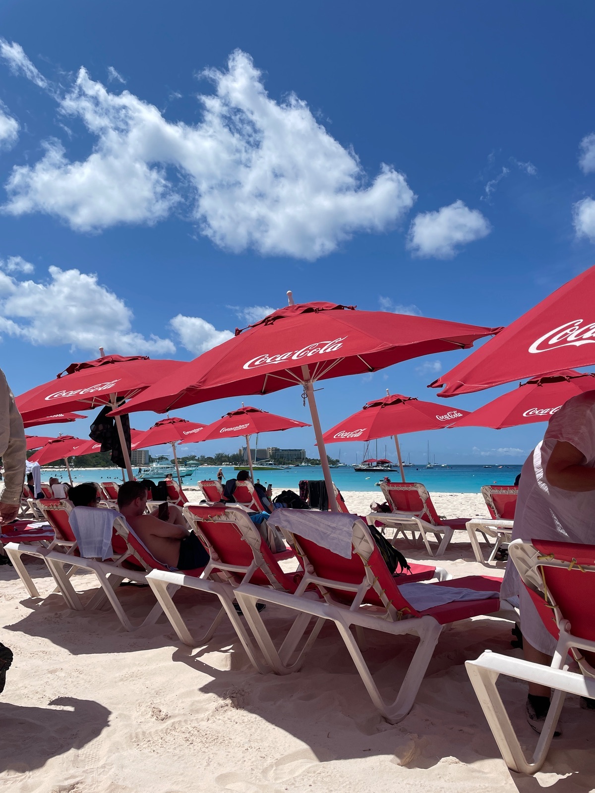 Copacabana Beach Club Barbados. Hier ist der Kommerz angekommen. Nicht wie gestern mit einheimischen Oster Beach Party feiern. Bier 6$, Rumpunsch nur süßes Bonbonwasser. Nach einem Lobster frag ich lieber gar nicht. Der Strand an sich ist super. Puderzuckerstrand, türkisfarbenes Meer.