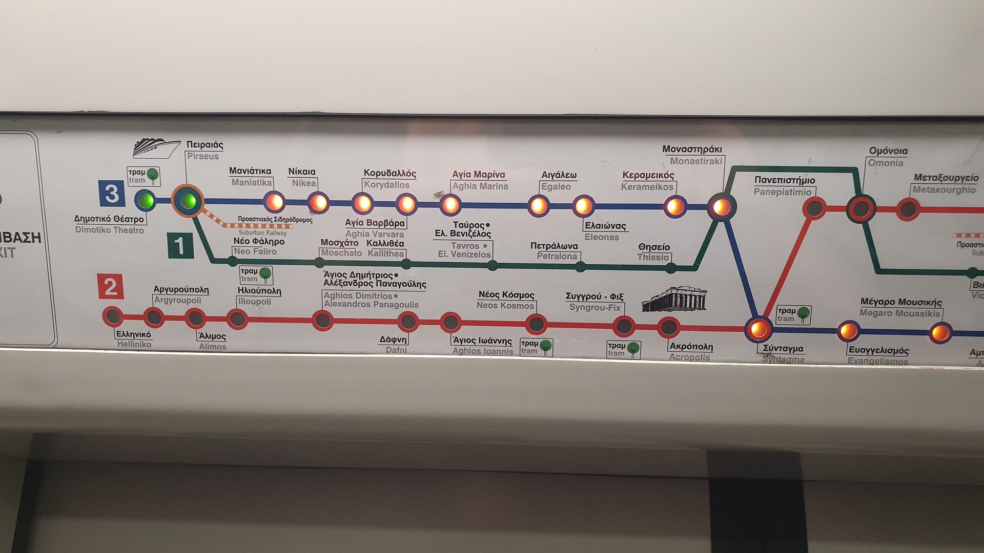 wir waren letzten Freitag mit der blu in Piräus. Sind vom Schiff aus gute 30 Minuten zur Metrostation "Dimotrio Theatro" gelaufen. Dies ist übrigens die Endstation. Da haben wir uns dann für ca. 2,05 Euro pro Person eine Streifenkarte für zwei Fahren (Hin- und Rückfahrt) zur Akropolis gekauft. Anschließend stiegen wir in die blaue Linie 3 und fuhren 11 Stationen bis zum Halt in "Syhtagma". Hier stiegen wir dann in die rote Linie, Richtung "Helliniko" ein und fuhren noch eine Station weiter bis zur Akropolis. Die Metro war sehr modern und sauber. Wichtig ist es, die Karte vor Fahrtbegin zu stempeln, da man an der Endstation sonst nicht raus kommt.