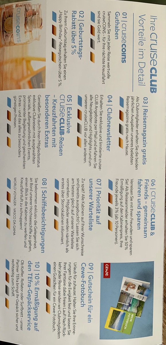 Ich wusste auch nicht dass extra Club Reisen angeboten werden mit Extras für Cruise Club Mitglieder .