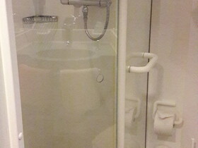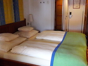 Doppelbett und kleiner Tisch und Sofa sind vorhanden. Die Nasszelle ist bei den verschiedenen Kabinentypen ja mehr oder weniger gleich. In dieser Kabinenkategorie eine gute Wahl.