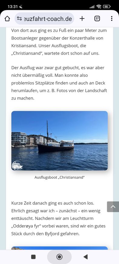 Das Wetter war mehr als genial! Strahlend blauer Himmel und Sonnenschein. Aber recht frisch. Wir hatten uns warm angezogen und saßen auch oben an Deck. Es wurden auch noch Decken verteilt. Die Bootsfahrt ging 1,5 h und es war landschaftlich wirklich sehr, sehr schön. Den Spaziergang durch das Dorf, war auch nett, aber hätte ich persönlich drauf verzichten können. Im Bus konnte man sich dann auch noch mal die Landschaft ansehen.