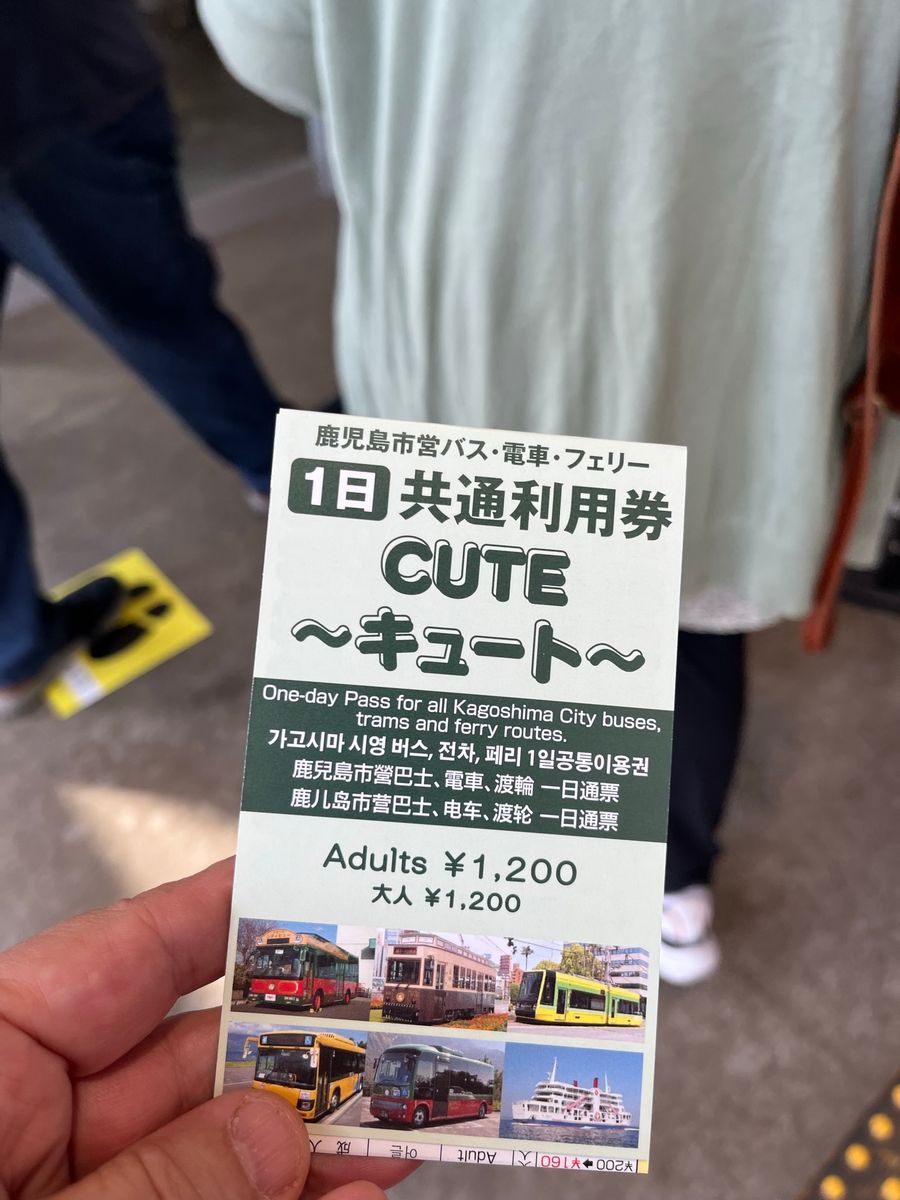 Man kann in Kagoshima sich eine CUTE Karte (ca. 7€) kaufen und alle Verkehrsmittel dann nutzen (Straßenbahn, Fähre, Bus). Wir haben unsere Cute Karte am Fähranleger gekauft. Vom Hafen bis zur Station der Straßenbahn geht man ca. 30 min, nicht gerade ein schöner Weg. Aus Zeitgründen sind wir mit dem Taxi, diese standen am Hafenterminal, zum Fähranleger für die Vulkaninsel Sakurajima gefahren. (ca. 20 Euro) – ach ja Geld haben wir gewechselt am Automaten im Hafenterminal. Man gibt US Dollar o.ä. hinein und bekommt dann den Betrag in Landeswährung zurück. Mit der Fähre sind wir rüber zum aktiven Vulkan Sakurajima gefahren.